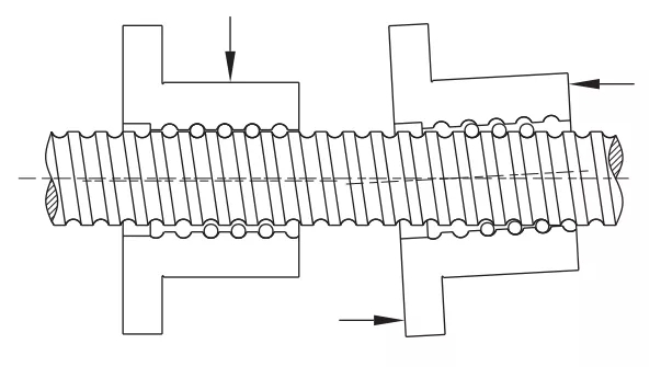 4.與內(nèi)部循環(huán)螺母匹配的滾珠絲杠軸的一端必須小于谷直徑;