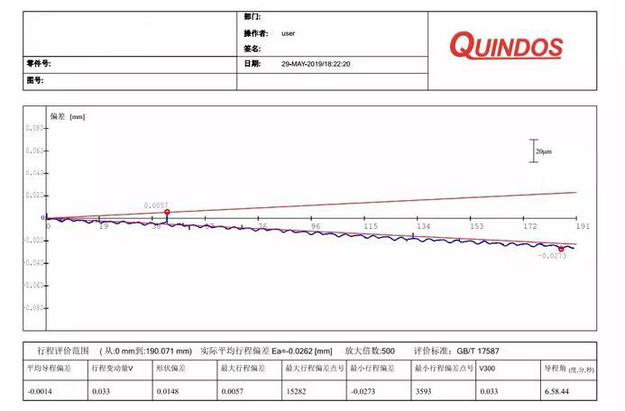 提供圖形化的檢測報告,包括行程偏差圖、行程形狀圖、波紋度圖形報告等。