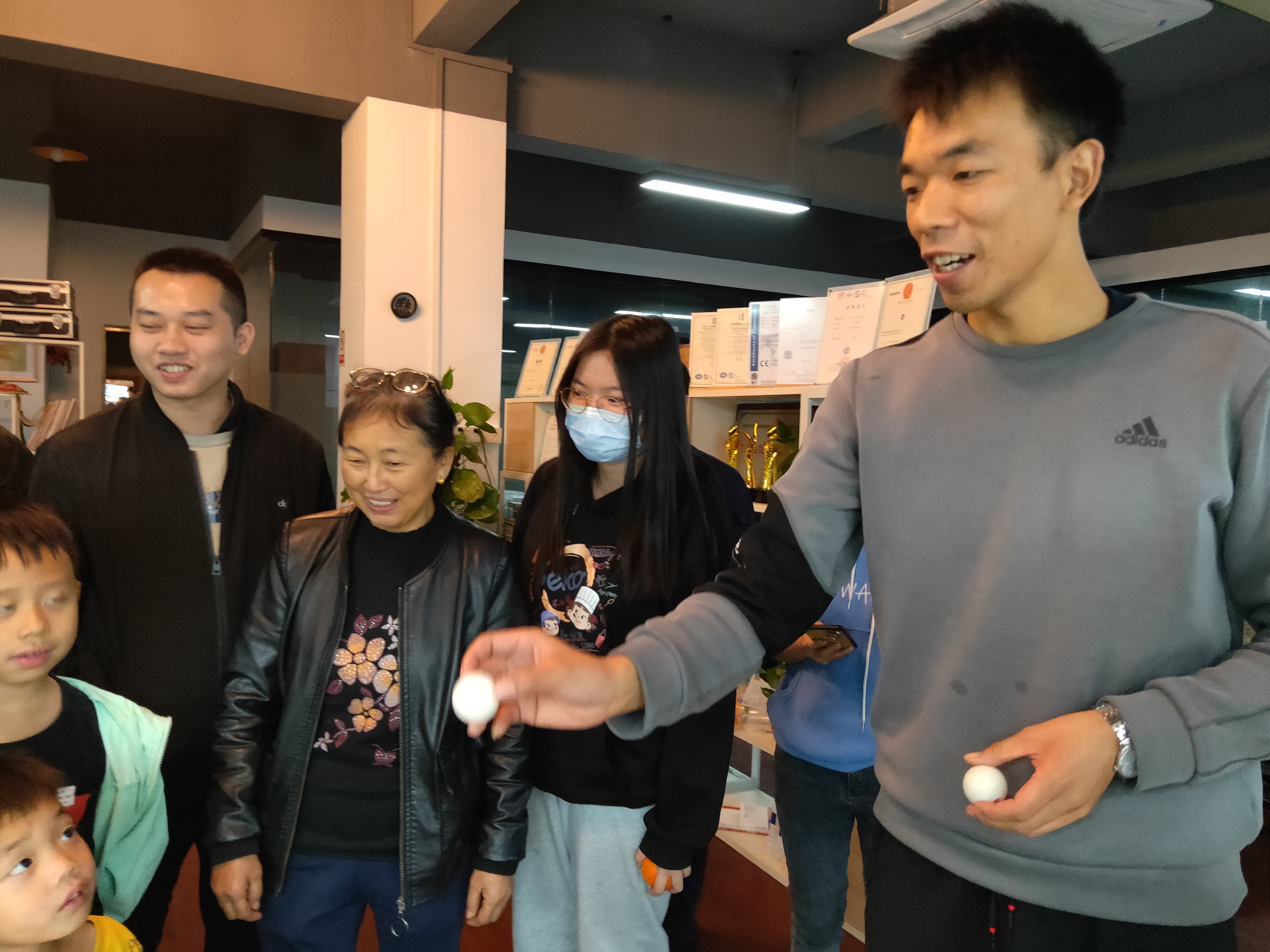 同時(shí)我們還準(zhǔn)備了有趣的乒乓球有獎(jiǎng)活動(dòng)。桌上擺了十排水杯,呈三角形狀,站在遠(yuǎn)處扔乒乓球在桌面上彈一次,讓乒乓球彈進(jìn)水杯。最遠(yuǎn)處的第一排的一個(gè)水杯有500元大獎(jiǎng)哦,二三排200元大獎(jiǎng),往后類推。每人3次機(jī)會(huì),獎(jiǎng)金可以疊加。是不是很心動(dòng)呢?看著挺簡(jiǎn)單,但這也是個(gè)技術(shù)活呢,有的同事想著沖擊500元大獎(jiǎng),結(jié)果3次一個(gè)水杯都沒進(jìn)。也有的就穩(wěn)妥一些,中了幾個(gè)200元大獎(jiǎng)。如果是你,你會(huì)中幾個(gè)獎(jiǎng)呢?